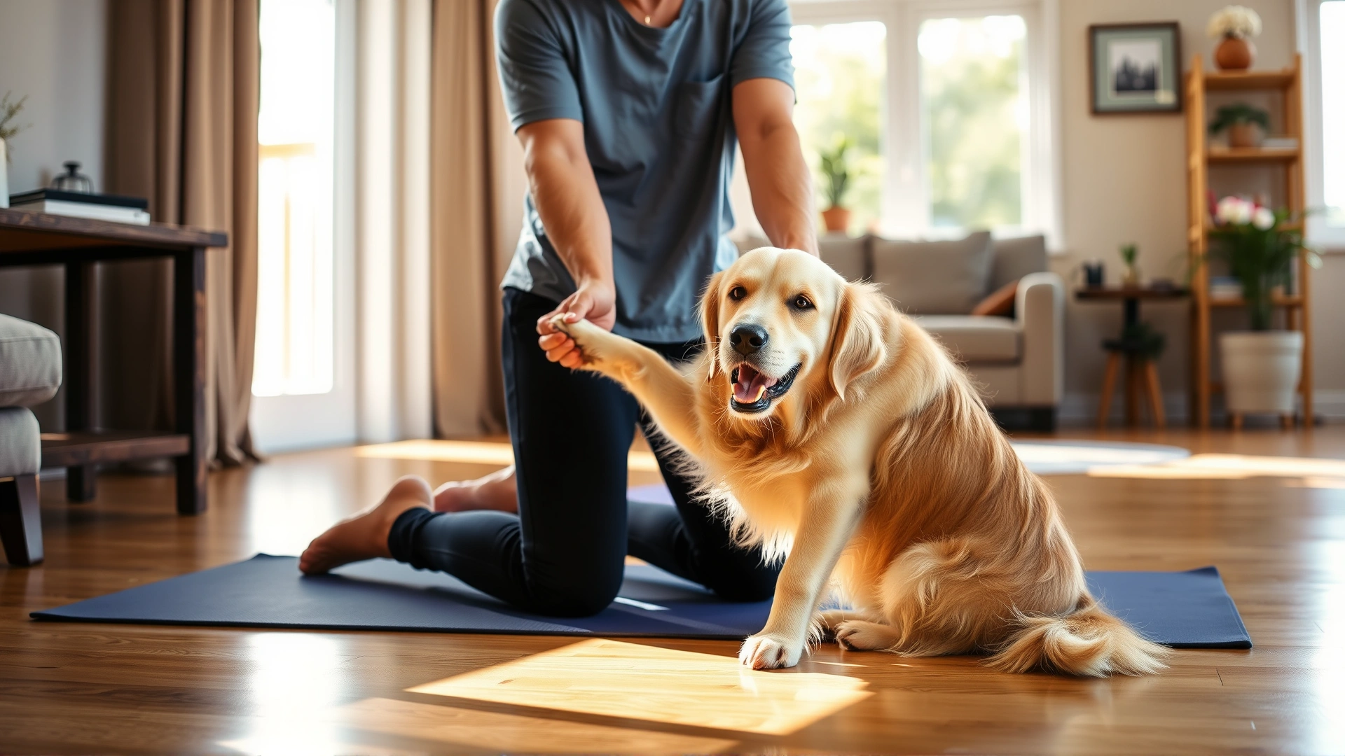 - اختيار مساحة آمنة: سجادة غير زلِقَة أو بساط يوغا يحول دون انزلاق الكلب.