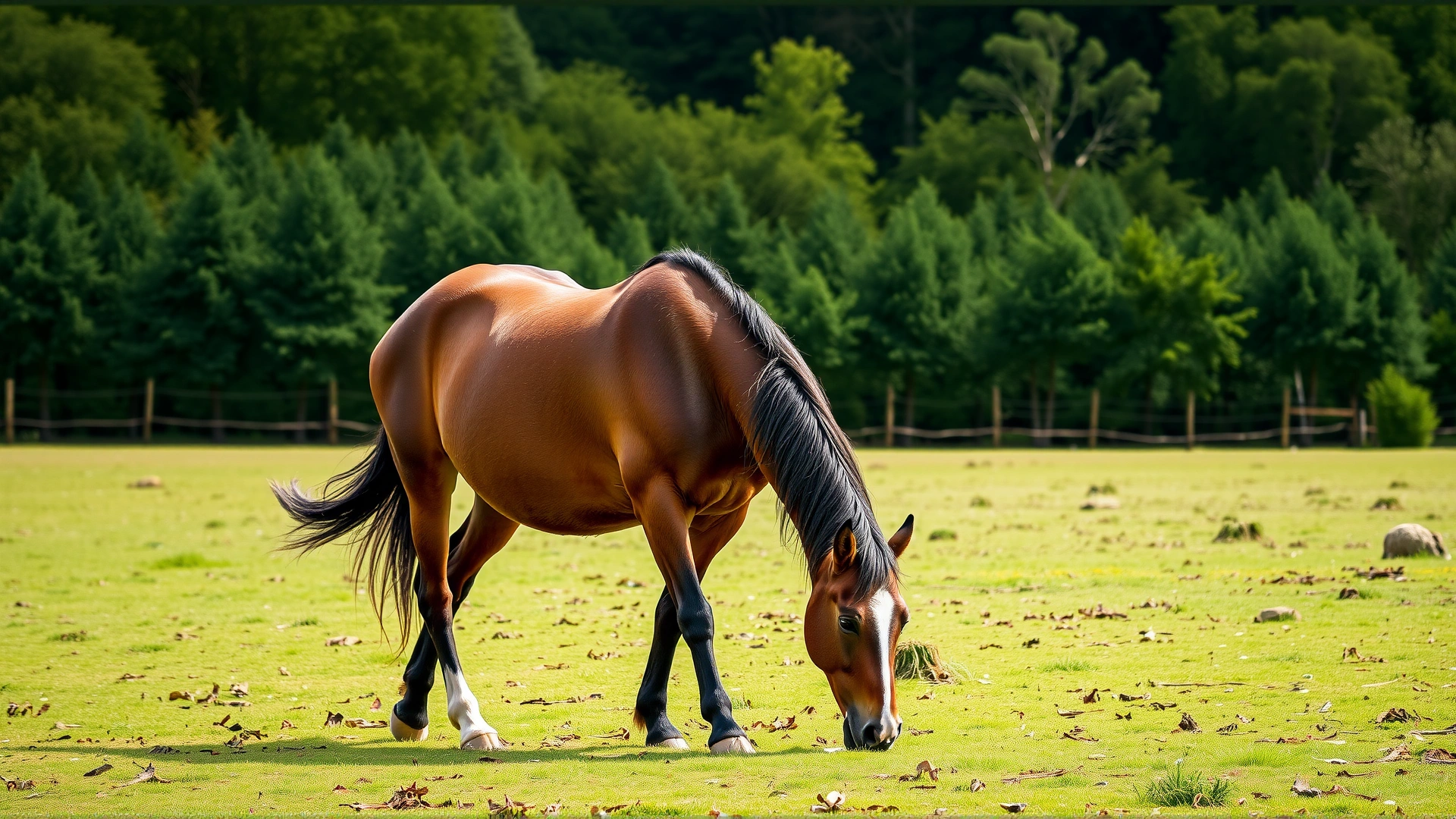 • مساحة خارجية (مرعى) لا تقل عن نصف هكتار للحصان الواحد للحركة والرعي الحر.