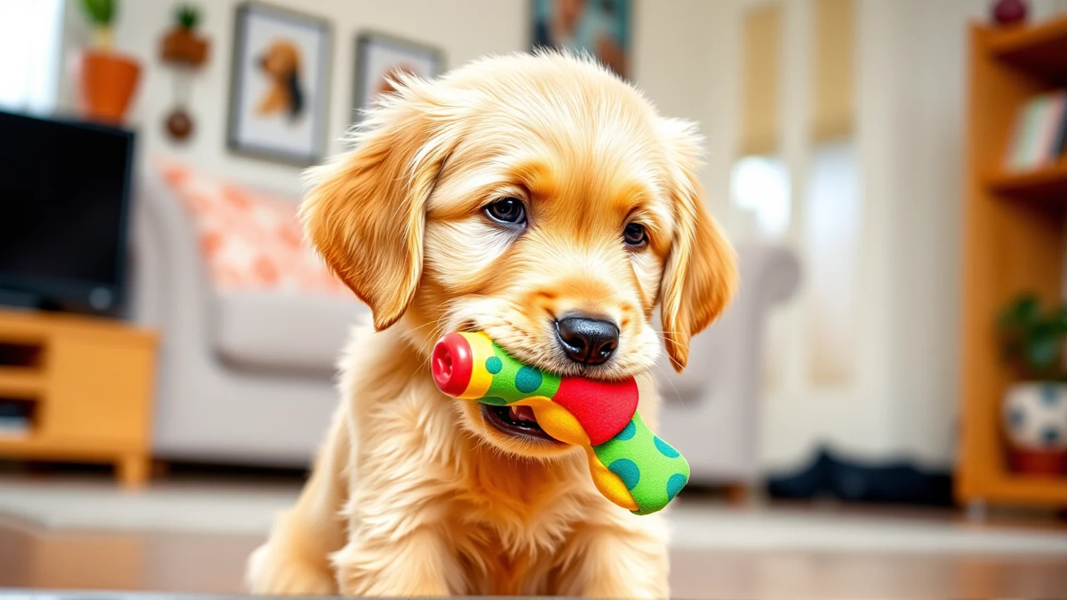 اختر ألعاباً متينة مصنوعة خصيصاً للجراء وقابلة للمضغ بأمان. يُفضَّل تنوُّع القوام (مطاط، حبال، بلاستيك طبي) لتلبية مختلف الاحتياجات الحسيّة. جرّب تجميد بعض الألعاب المطاطية لتهدئة لثة الجرو أثناء التسنين.